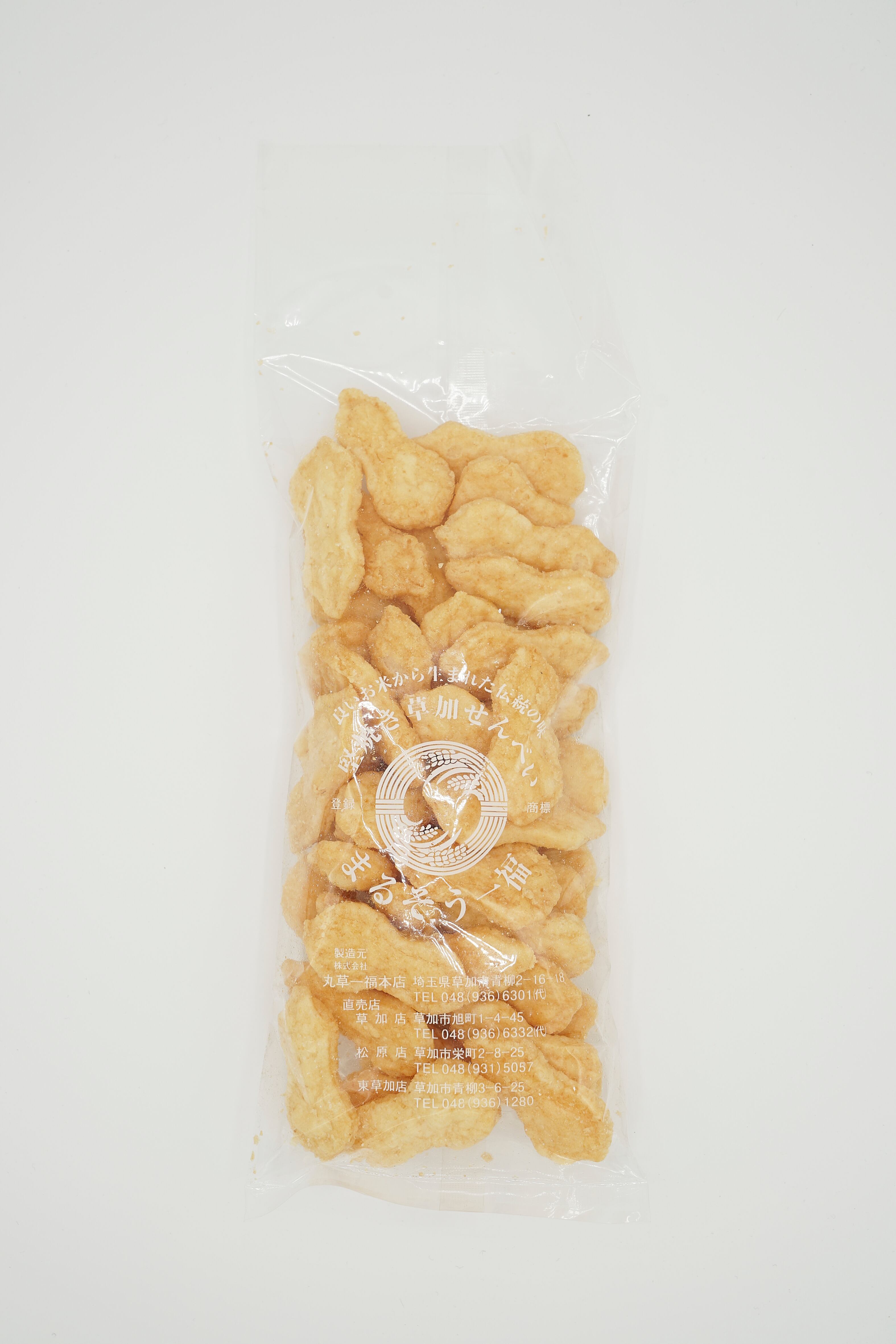 埼玉県産の美味しいお米などの厳選された原料、製造過程からできた人気商品【千成ひょうたん】を良質な米油でカラッと揚げました。自然塩をまぶした「プレーン」味となっています。食感は歯ごたえがあり、お米の甘みも感じられるので、止まらない美味しさです。辛さもないのでお子様のおやつにもおすすめです。