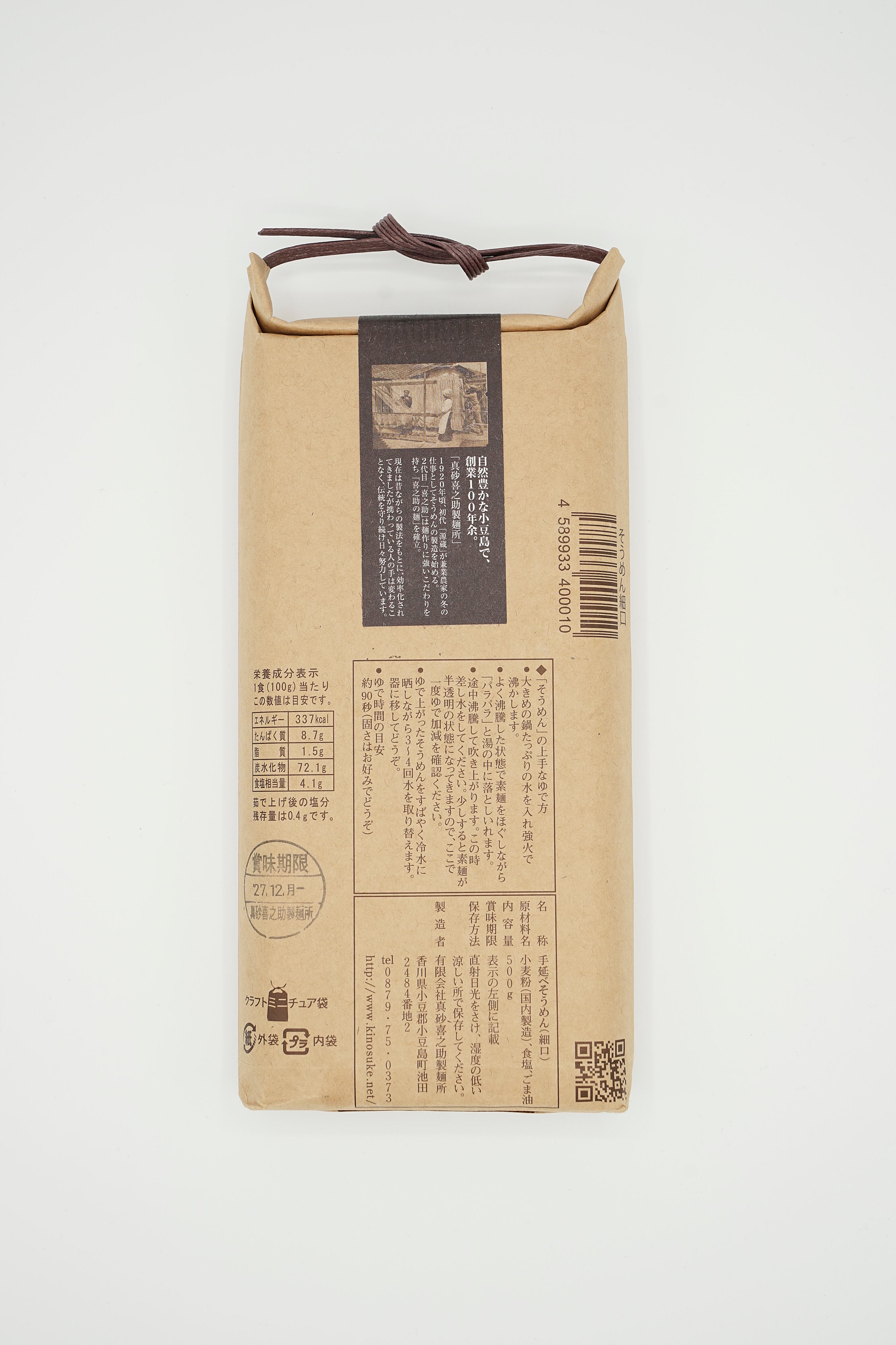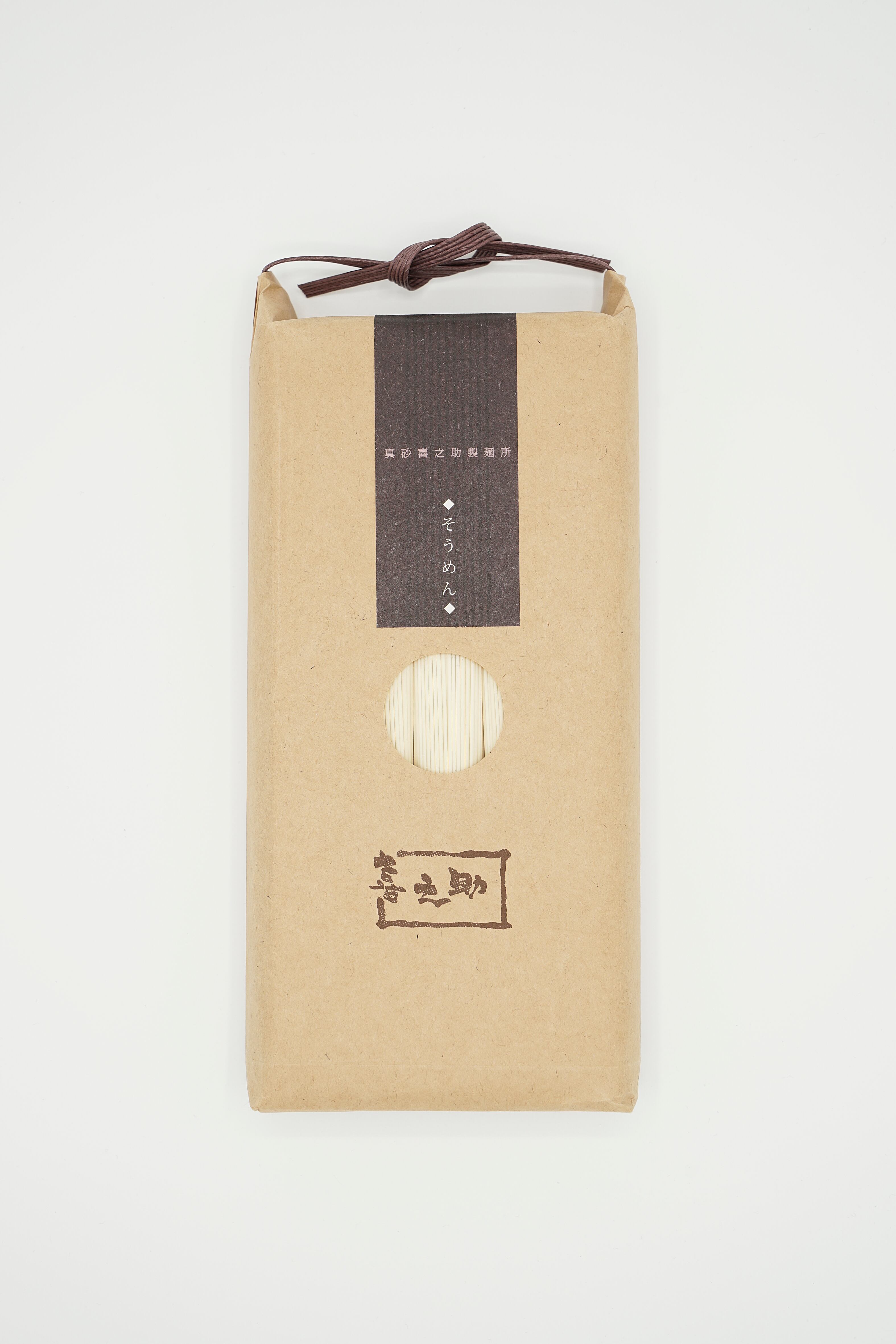 真砂喜之助製麺所の100年間変わらない製法で、丁寧に作られているそうめんは全国からの人気も高く、伊豆島の小麦や瀬戸内海の天然塩を使用。原材料にもこだわった麺は、滑らかなのど越しと小麦の香りを楽しめます。