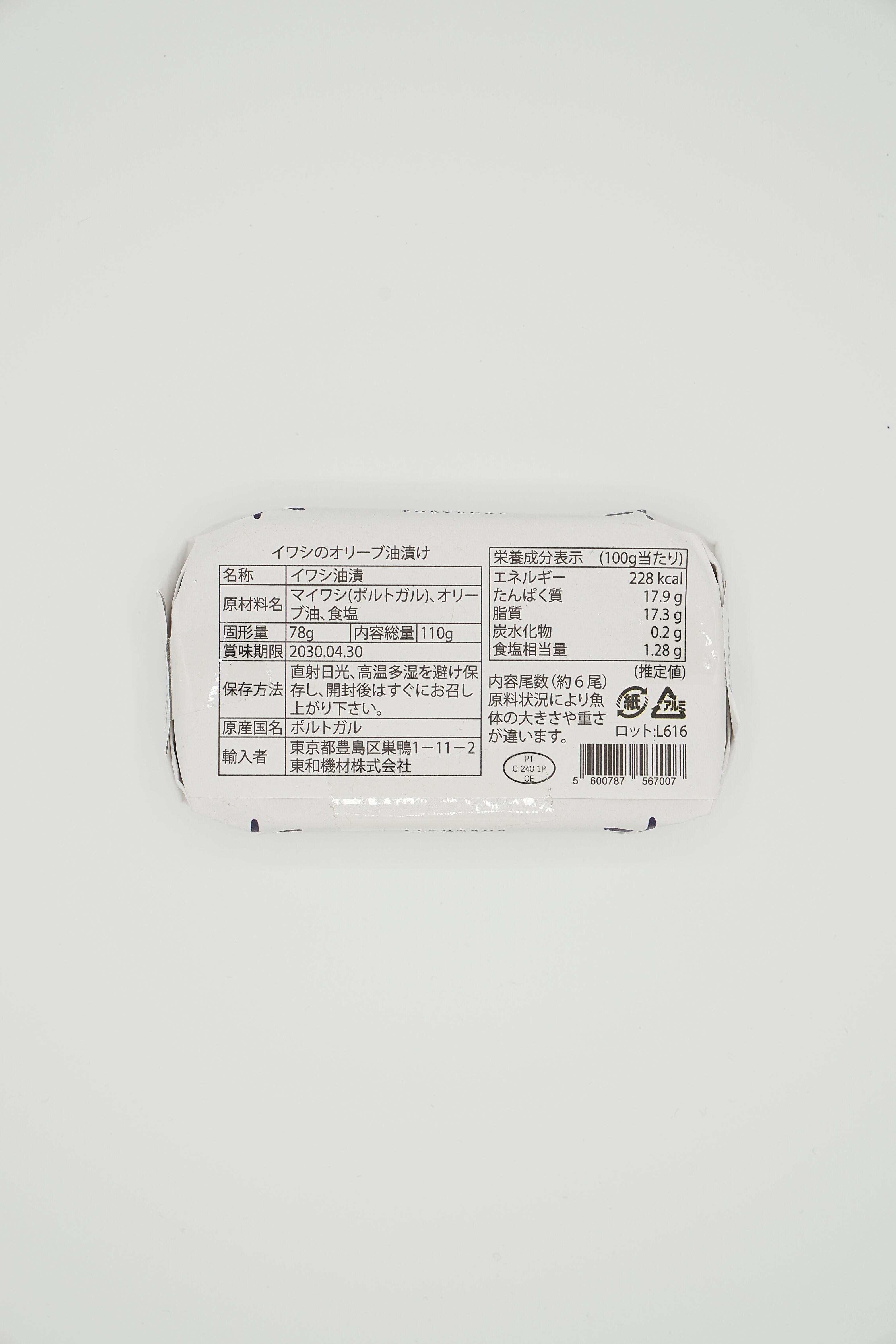 原材料:マイワシ(ポルトガル)、オリーブ油、食塩