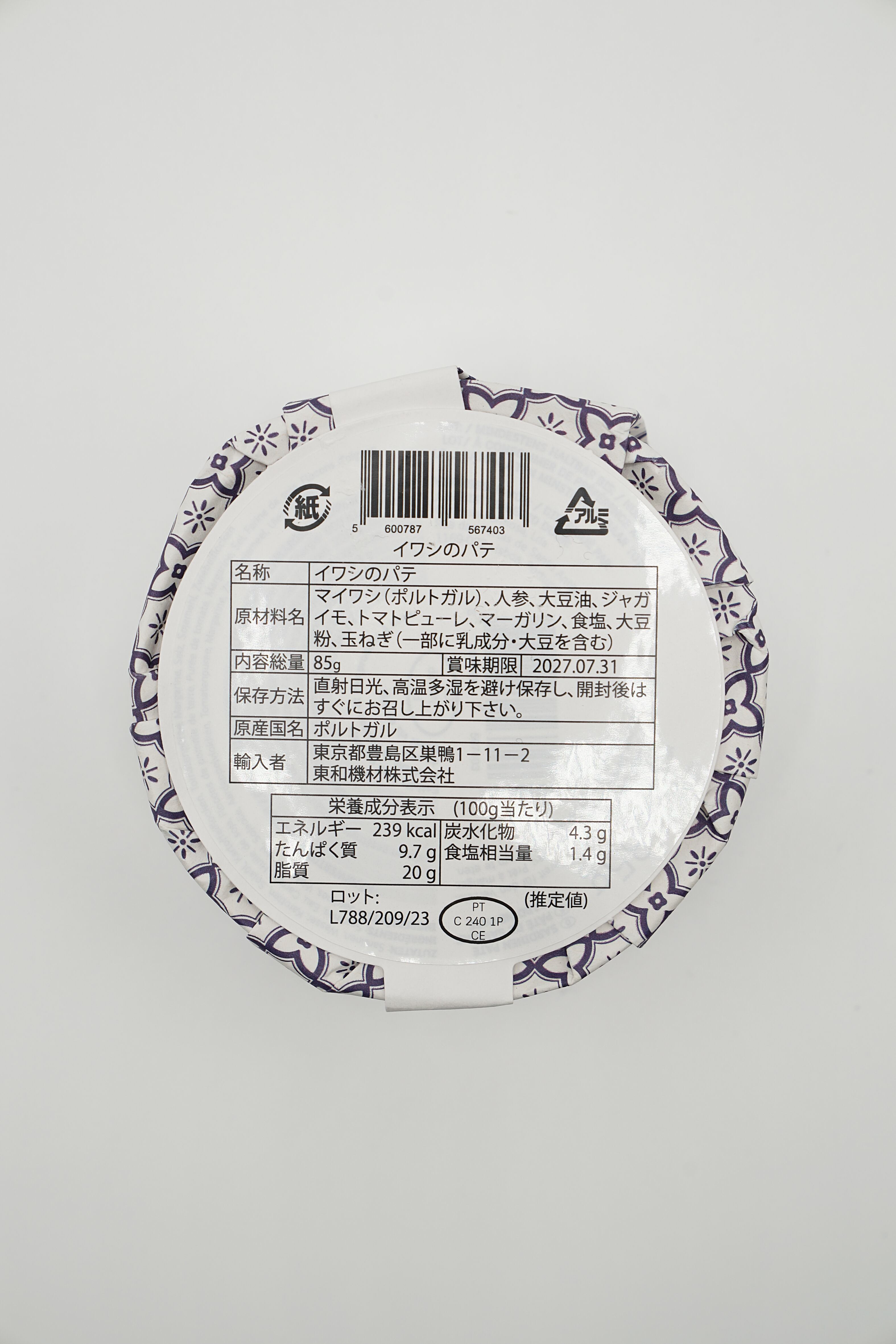 原材料:マイワシ(ポルトガル)、人参、大豆油、ポテトフレーク、トマトピューレ、マーガリン、食塩、きなこ、ニンニクフレーク