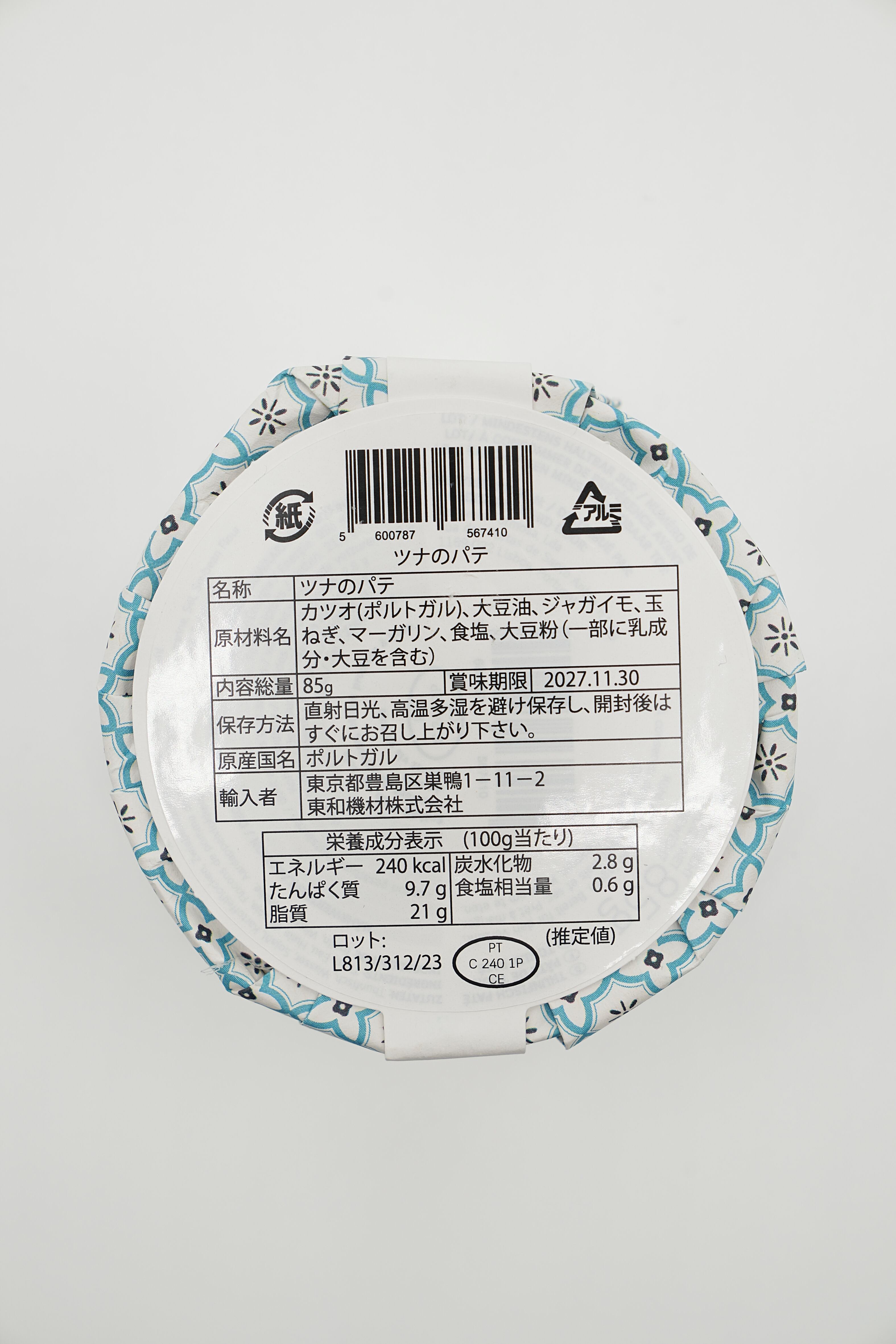 原材料:ツナ(ポルトガル)、大豆油、ポテトフレーク、ニンニクフレーク、マーガリン、食塩、きなこ