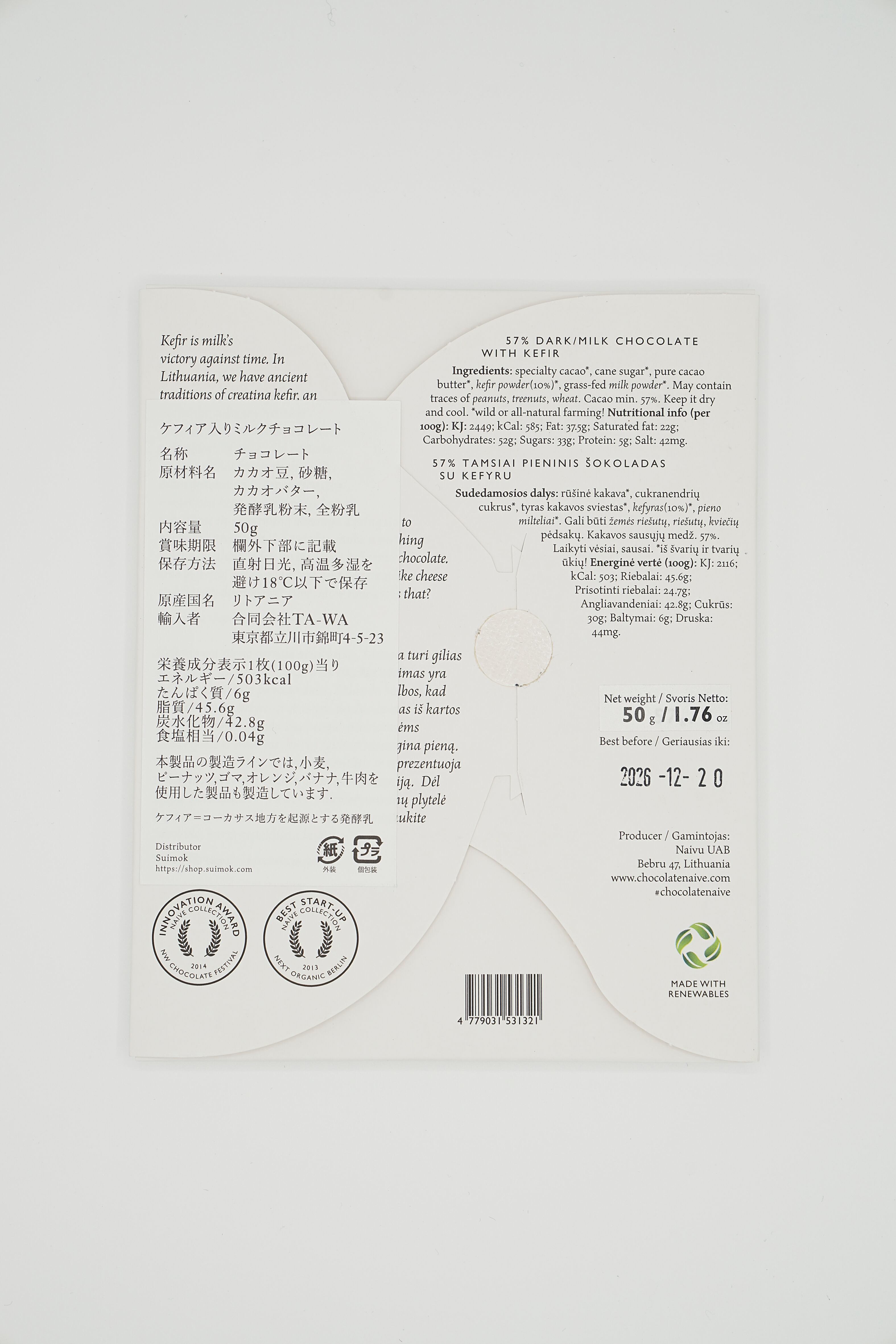 原材料:カカオ豆、砂糖、カカオバター、発酵乳粉末、全粉乳