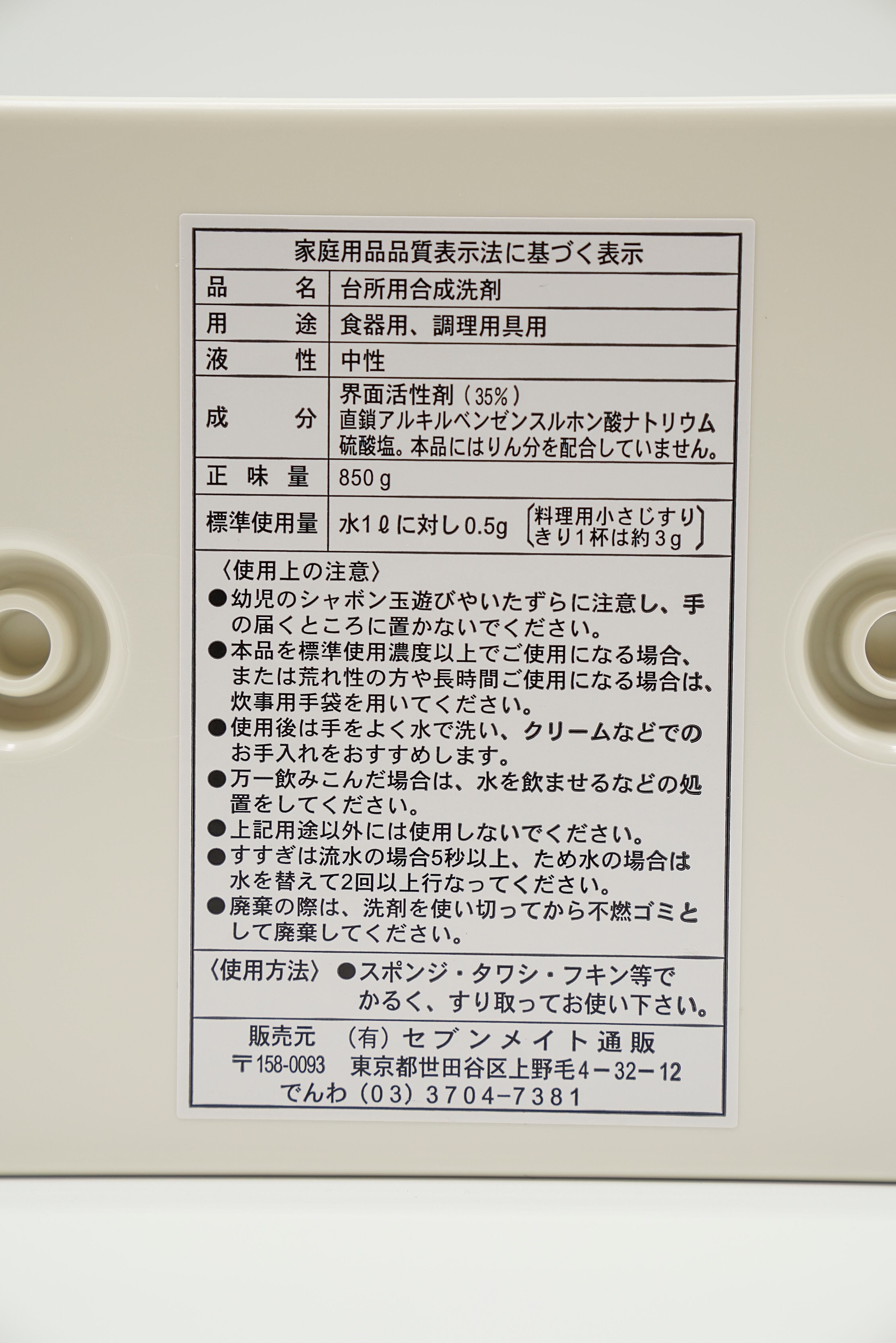 原材料:植物由来界面活性剤(35%.直鎖アルキルベンゼンスルホン酸ナトリウム)、洗浄補助剤(硫酸塩)