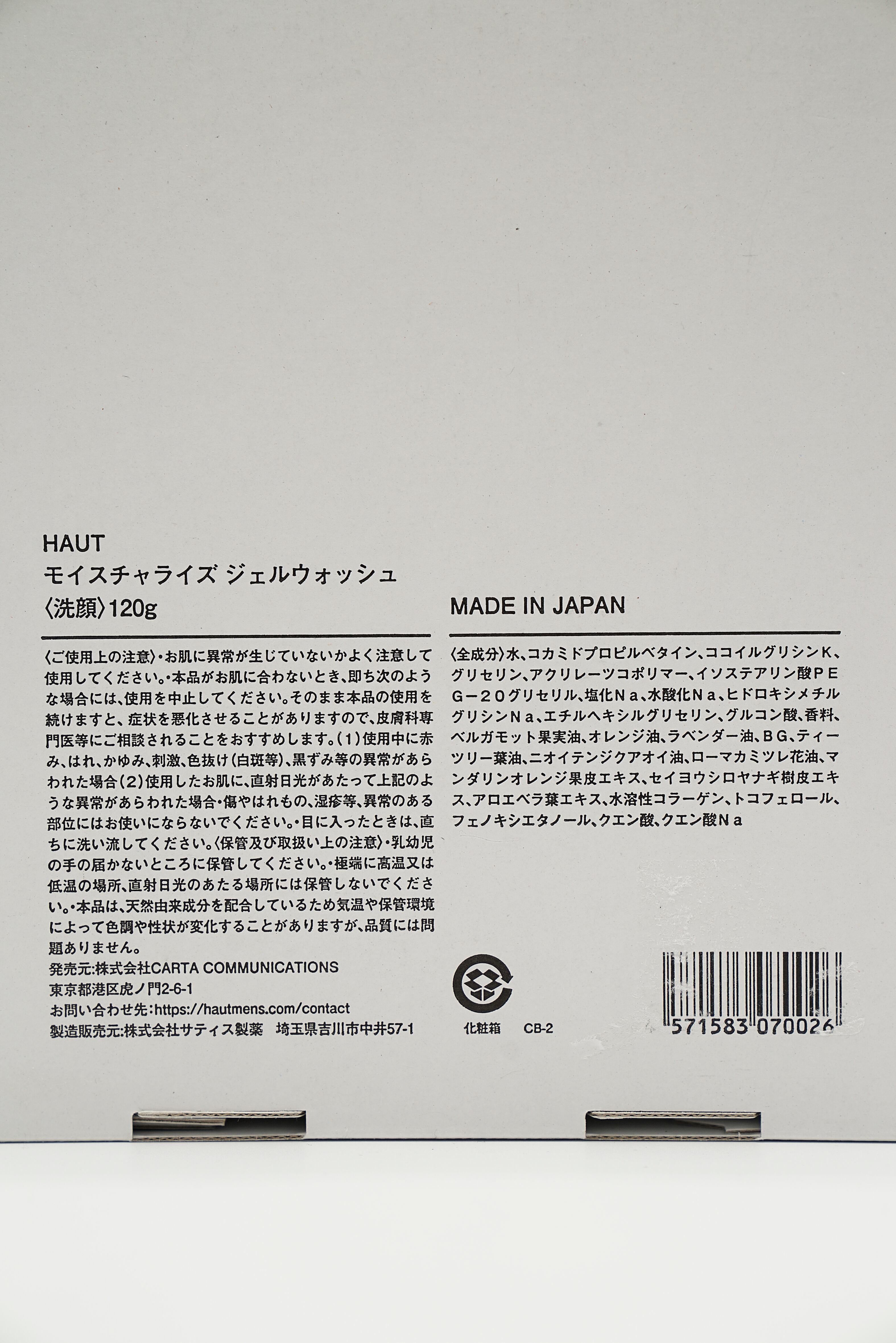 原材料:水、コカミドプロピルベタイン、ココイルグリシンK、グリセリン、アクリレーツコポリマー、イソステアリン酸PEG-20グリセリル、塩化Na、水酸化Na、ヒドロキシメチルグリシンNa、エチルヘキシルグリセリン、グルコン酸、香料、ベルガモット果実油、オレンジ油、ラベンダー油、BG、ティーツリー葉油、ニオイテンジクアオイ油、ローマカミツレ花油、マンダリンオレンジ果皮エキス、セイヨウシロヤナギ樹皮エキス、アロエベラ葉エキス、水溶性コラーゲン、トコフェロール、フェノキシエタノール、クエン酸、クエン酸Na